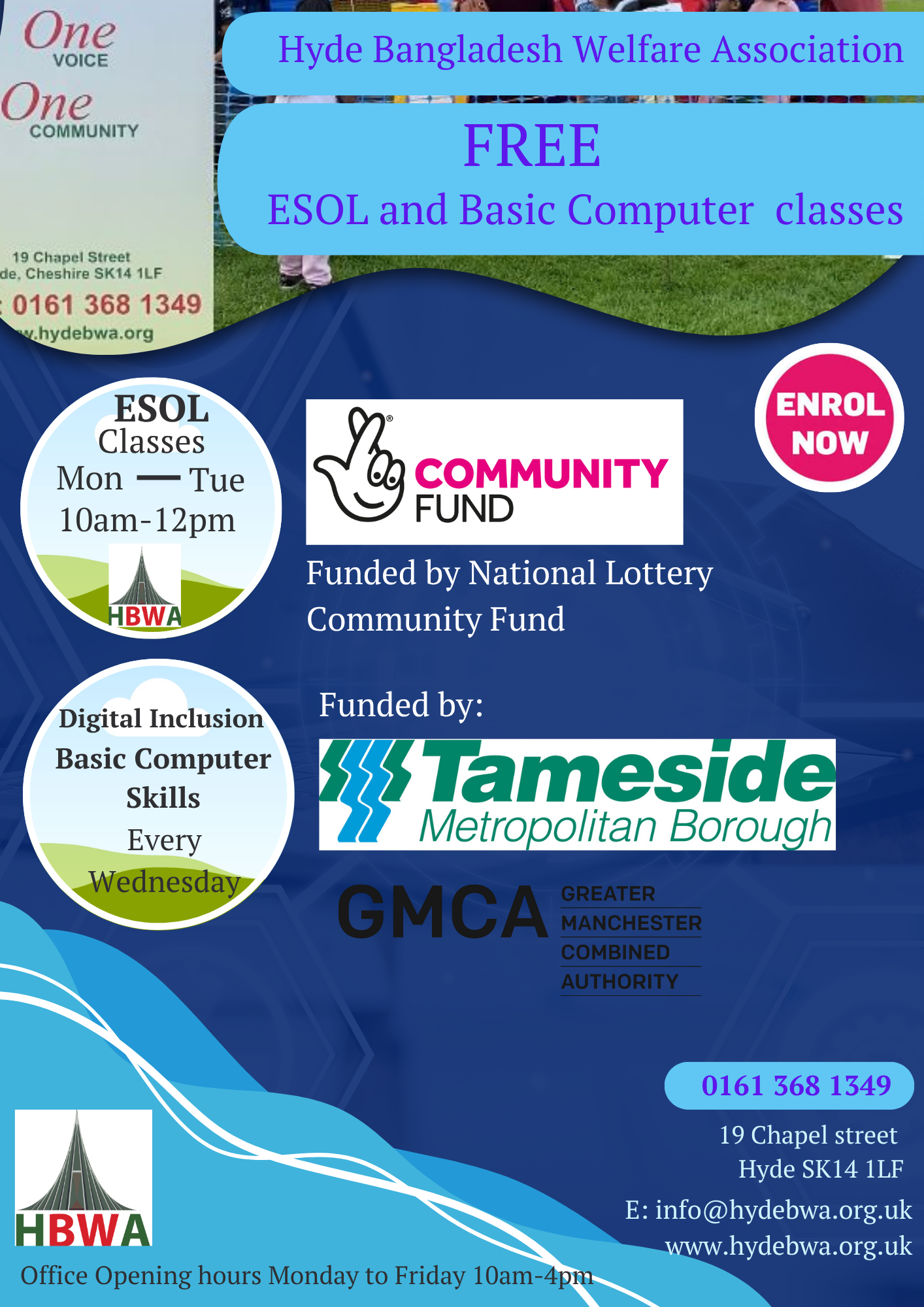 The community centre is based in Hyde (Tameside) in the Werneth Ward, which is located next to the Godley ward (according to 2001 Census is one of the most deprived wards of the country). Both these wards house most of the 10000 Bangladeshi community of Tameside. Early indication from the latest census shows the demographic and status is much the same, with increase in population and higher unemployment issues.